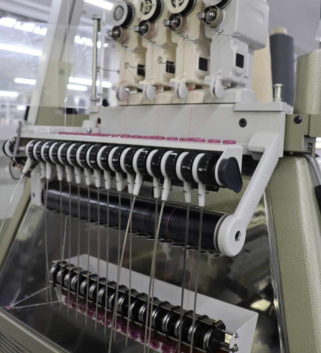 ハイゲージ用は細い針がずらりと3000本並んでいて、それが巧みに動き立体的にニットが編み上がってきます。